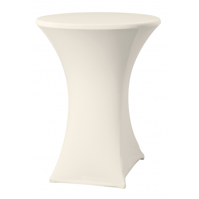 This stretch jersey table cover (90% polyester and 10% elastane) fits table tops up to 85 cm in diameter and a maximum height of 115 cm. This stretch cover adds color and prevents wrinkles.