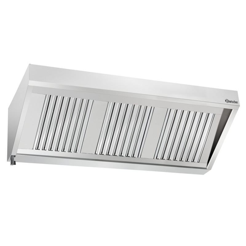 To ensure effective filtration, this hood is equipped with labyrinth grease filters that effectively trap and neutralize grease particles, thus limiting the spread of odors and the formation of residues on equipment. The peripheral channel and the turned-in inner edges are designed to minimize the risk of injury during handling and cleaning, while optimizing vapor containment.