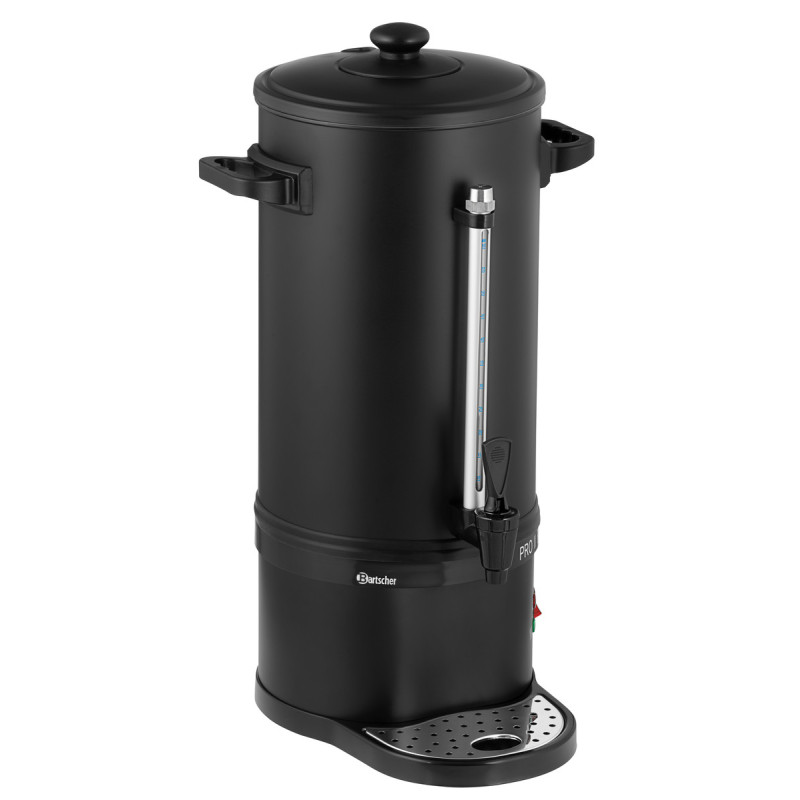 Le percolateur maintient le café à la température de service après brassage. Avec indicateur de niveau en verre, robinet anti-goutte et une réinitialisation automatique. Un voyant indique la fin du brassage et aussi s’il y a besoin de détartrage. Ses dimensions sont de 336 mm x 310 mm x (H) 465 mm.